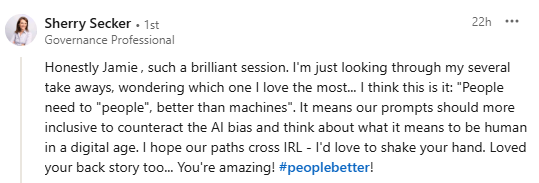“Best AI presentation I’ve attended! Thank you!”: S.S.